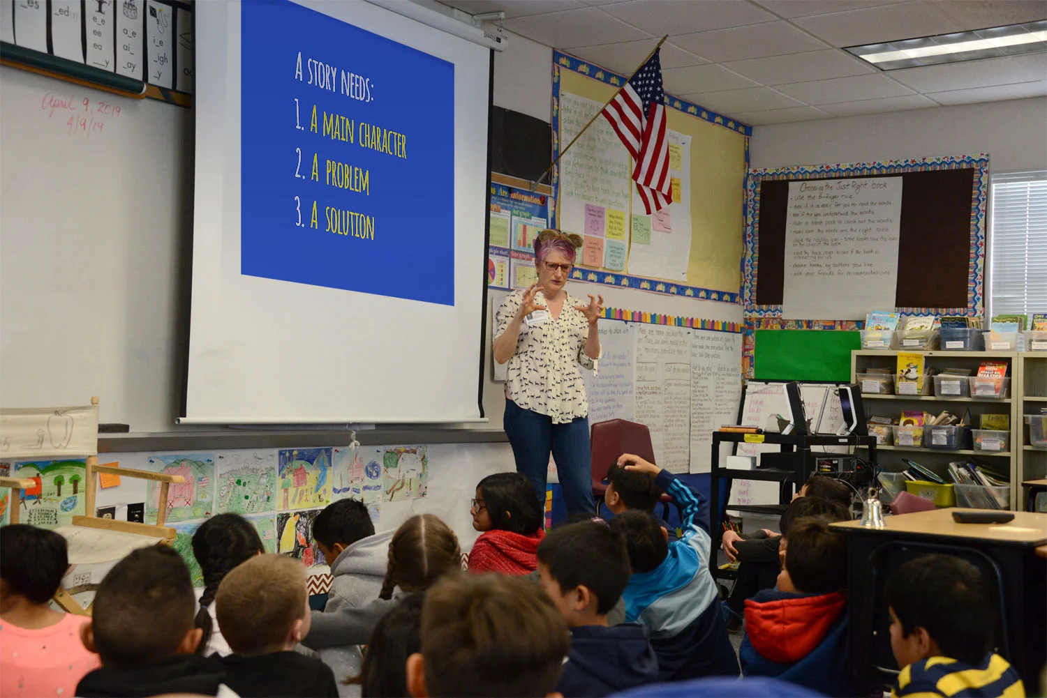 The second talk is 25-30 minutes long, intended for kids who are just beginning to recognize written words. This talk encourages them to focus on pictures to tell their story, using ROAR! as an example.